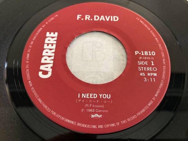 De single “I Need You / Porcelain Eyes” van F.R. David uit Japan.