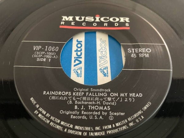 B.J. Thomas “Raindrops Keep Falling On My Head” 7” single uit Japan
